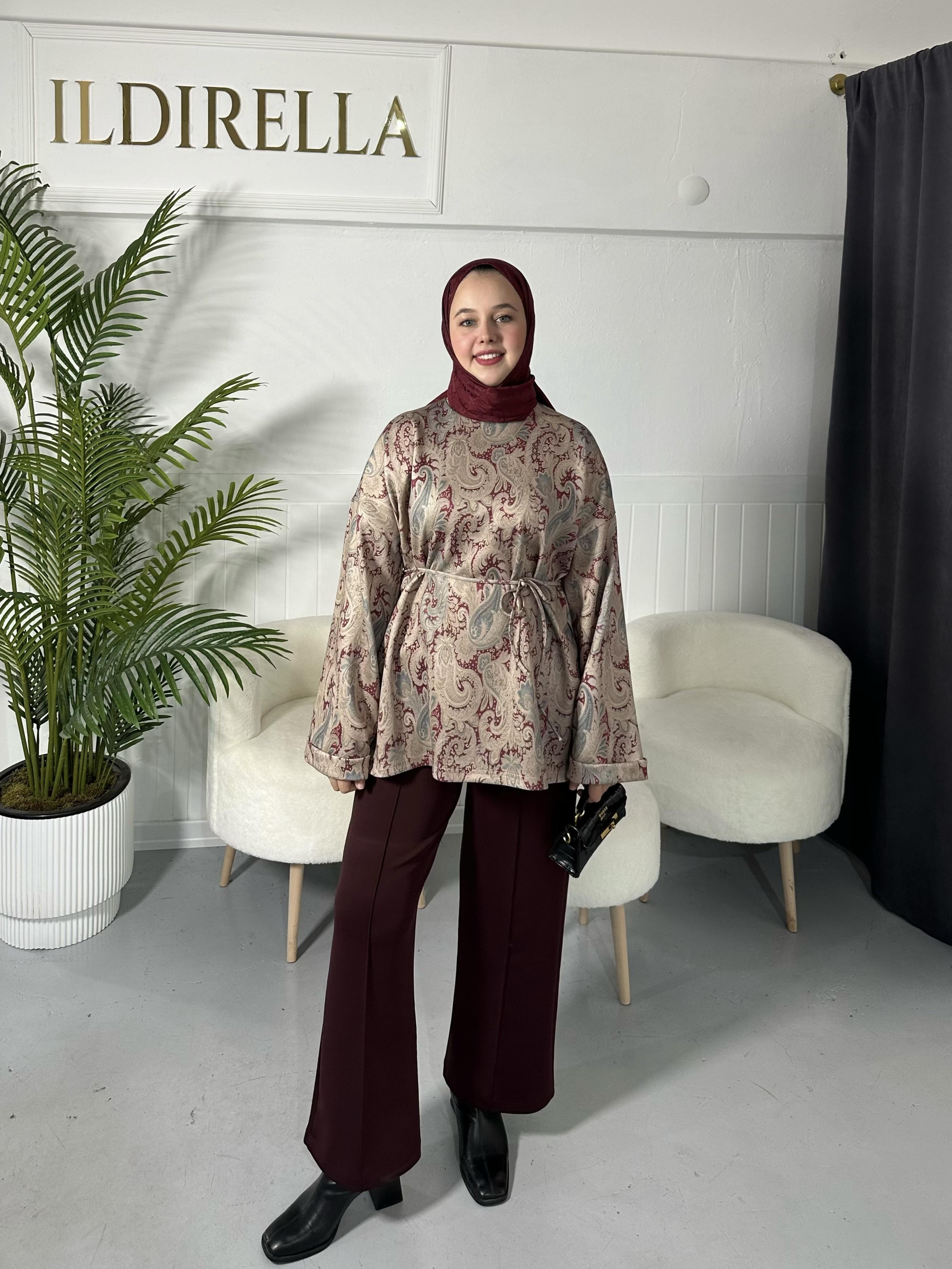 Desenli Scuba Tunik - Bordo