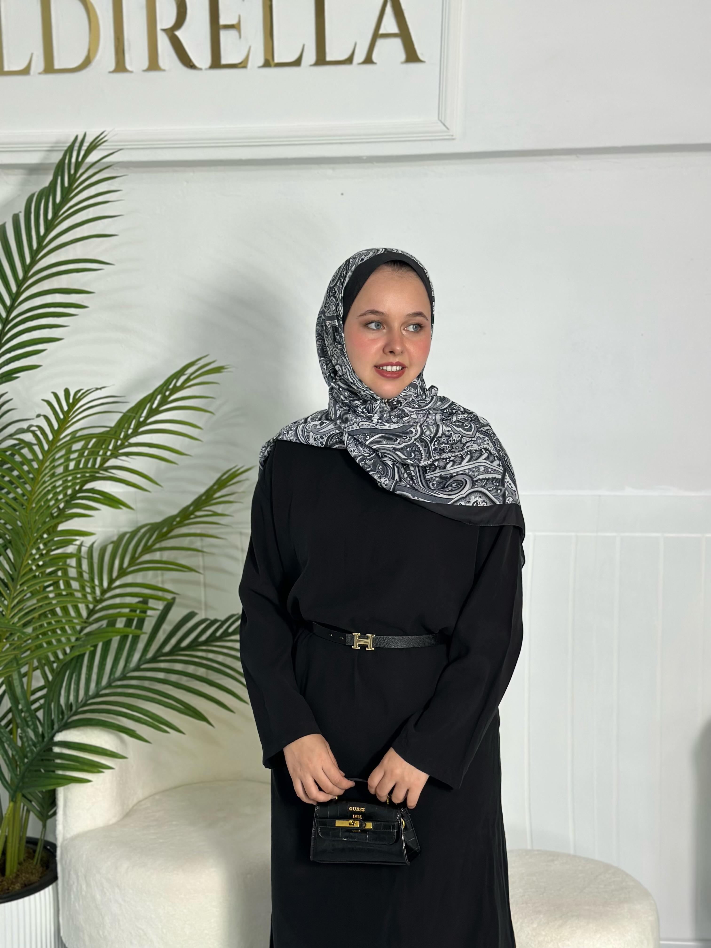 Tensel Modal Kuşaklı Mevsimlik Elbise - Siyah